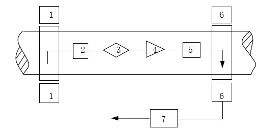 1.輸入能源耦合器 5.V/F變換器 2.穩(wěn)壓電路 6.輸出信號耦合器 3.應變橋 7.信號輸出電路 4.放大器
