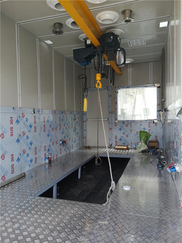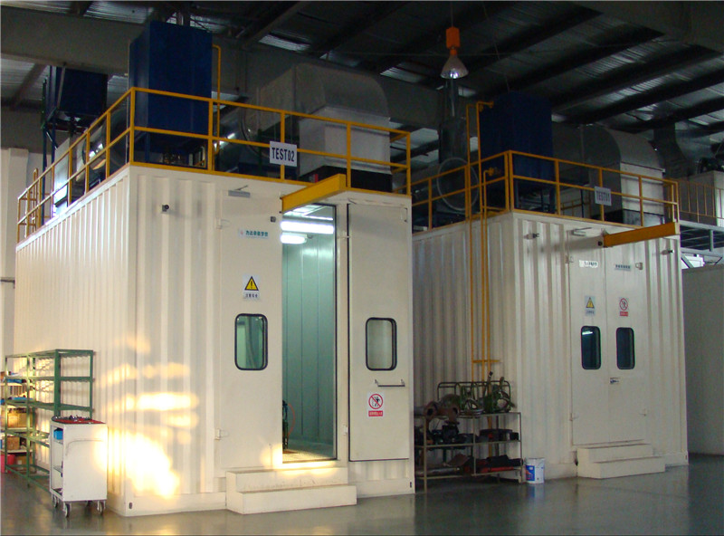 5.8集裝箱試驗室 5.8.1概述 集裝箱外型尺寸長9500(包含控制間)×寬3800×高3700mm(不包含送排風系統(tǒng)),其中發(fā)動機測試間內(nèi)部長度為6.95米,控制間內(nèi)部長度約2.10米箱體六面體結(jié)構(gòu)。可整體搬遷移動。整體式集裝箱包含以下內(nèi)容:集裝箱本體、吸音和隔音墻壁、防火觀察窗、防滑鋁合金地板,隔聲門、預留進出水、燃油和壓縮空氣的內(nèi)部管路,開關(guān)設(shè)備和電線,防爆照明系統(tǒng),發(fā)動機進排氣系統(tǒng)、箱體送排風系統(tǒng)等。